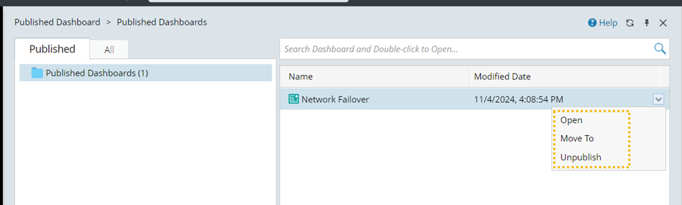 Once published, these dashboards are duplicated and stored in the Published tab, separating them from case-based troubleshooting dashboards for easier distinction, making it easier for you to view and manage company-wide dashboards.