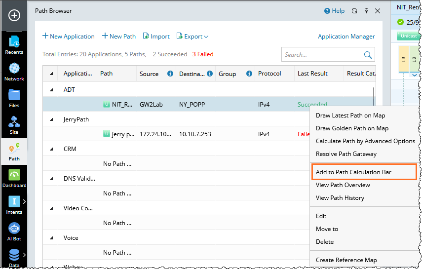 The Source and Destination IP will be populated to Path Calculation Bar.
