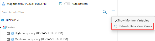 Refresh Data View Pane allows you to update the Flash Probe and Monitoring Variable result in the Probe Data View Pane, but the map time will not be reset.