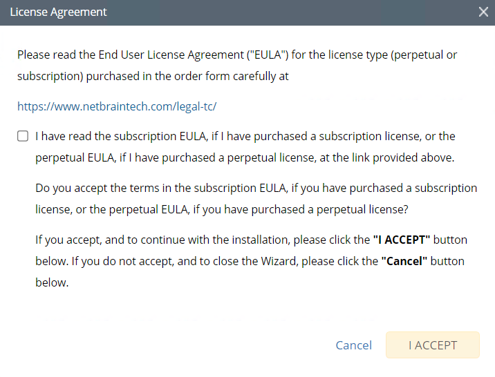 Review the license agreement, select the I have read the subscription EULA check box and click I ACCEPT.