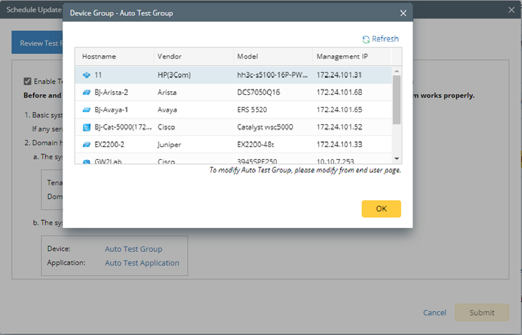 Tip: The devices in the Auto Test Group are automatically selected according to the device type discovered by the system. You can also manually edit or delete any devices to suit your specific needs. -