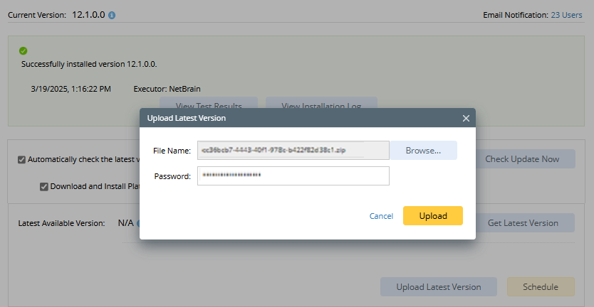 Tip: With the Discard Uploaded Version button, you can discard the previously uploaded update package and delete the system update task before the scheduled task is executed.