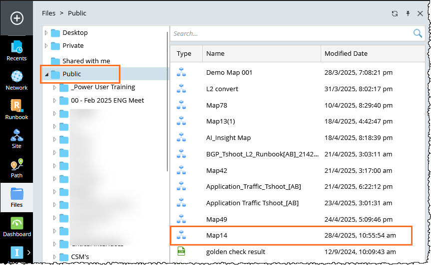 - Select a folder and enter a name for the map. Maps saved in Private or Desktop are visible only to you. To make a map available to all users, save it under Public.