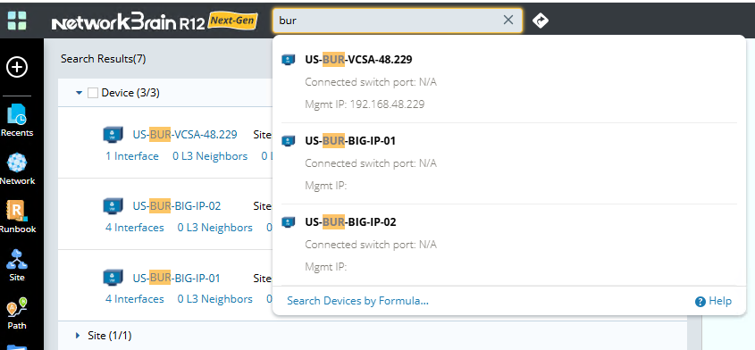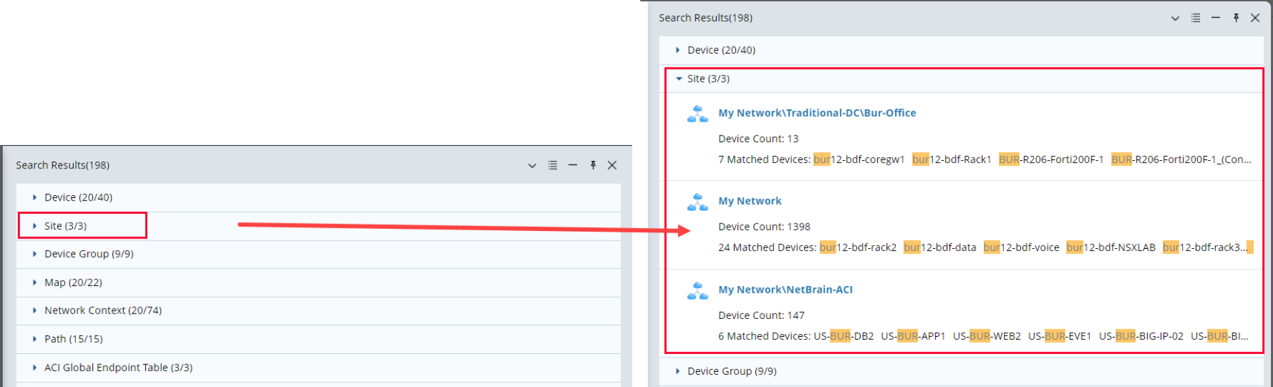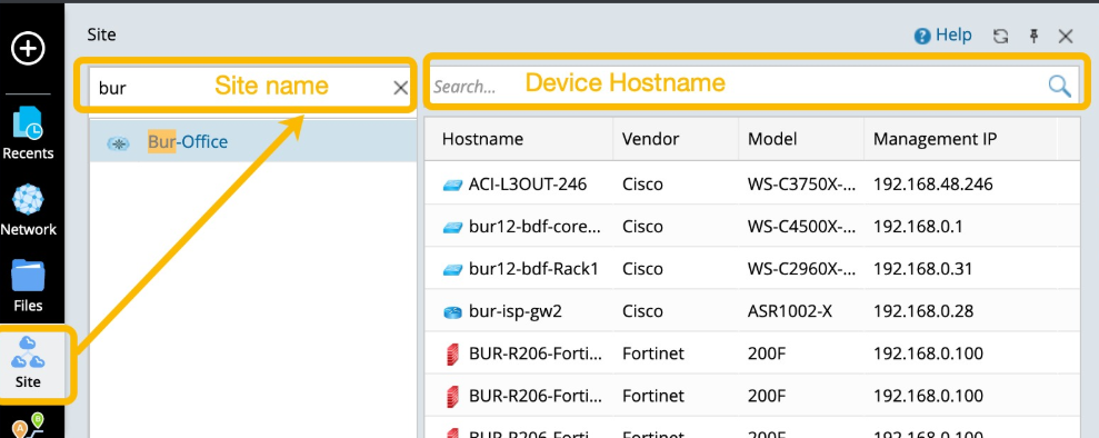 Note: Global Search doesn’t support Site Name search, but supports Site device name search.