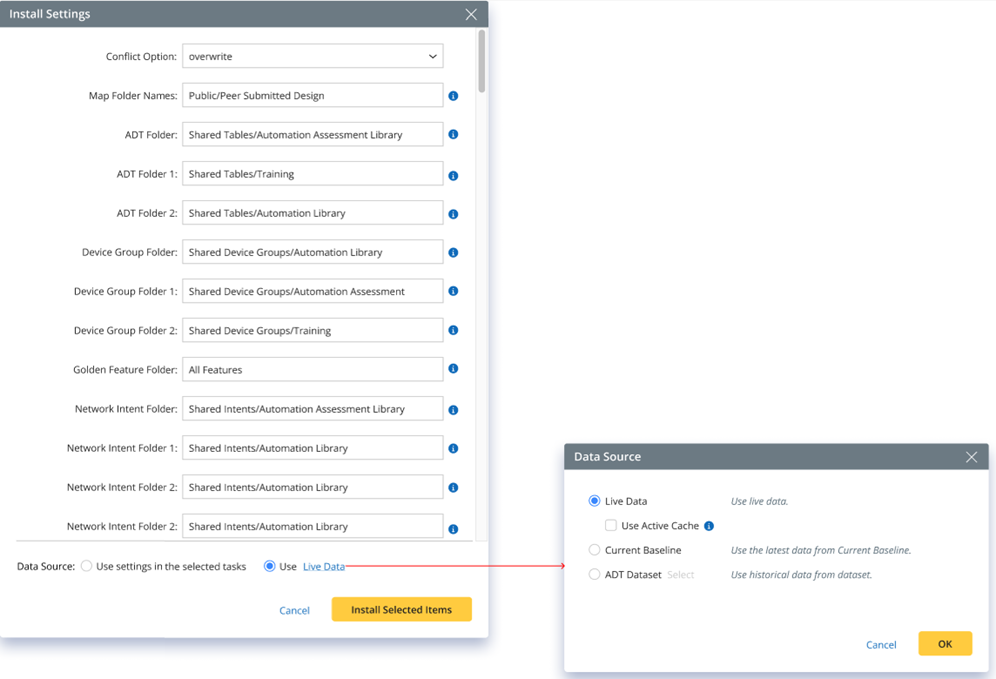 Installing Resources via NetworkBrain Download is the primary method for initiating installed resources (for more information, see Install and Reinstall Task). You can specify the data source for these resources during library installation. To facilitate this, Data Source options are provided: