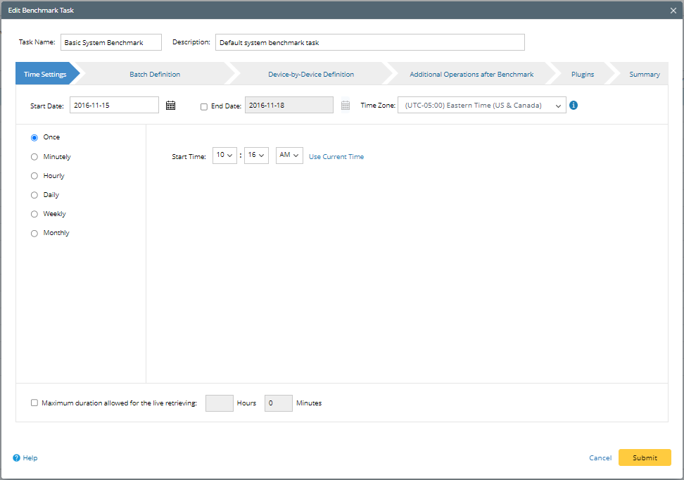 Follow the three major steps below to schedule the Benchmark
