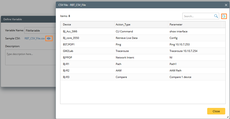 You need to select value for each column, and all the candidate values are from the ADT. After selecting value for the first column (Device), column 2 (Interface) uses column 1 (Device) as the key — only the rows where the selected column 1 (Device) data matches will be considered as candidate value for column 2 (Interface), and so on.