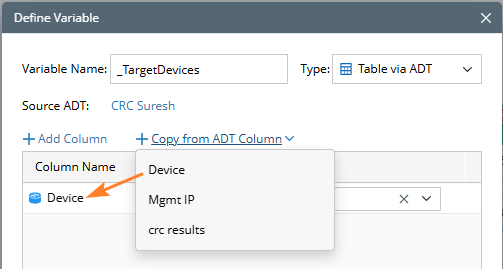 You can also click Copy from ADT Column to directly select a column as the current table column.