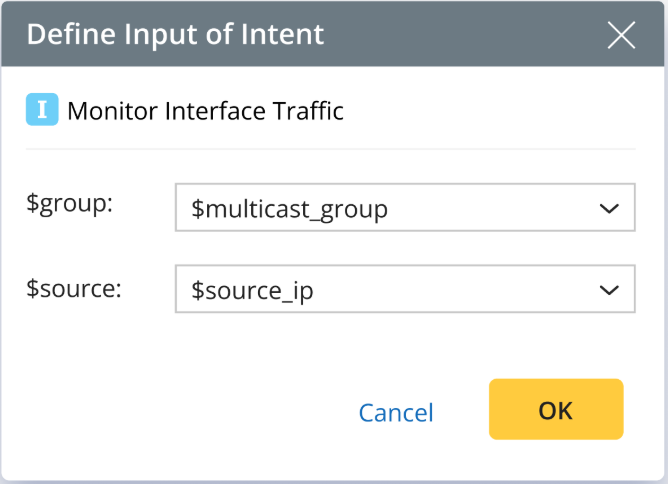 This option will be dynamically displayed and selected by default only when the Auto Intent or NIT contains macro variables. It cannot be unchecked. You can define how to assign values to the variables in the pop-up dialog by selecting template variable.