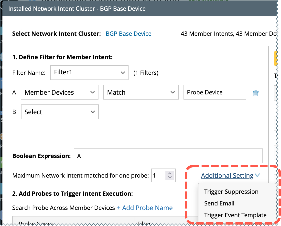- Click Select a Filter for each of the probe added for choosing the defined filter.