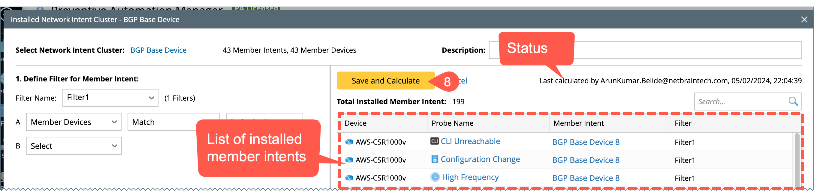 - Click Save and Calculate and upon calculation completed by the system, the status will appear next to it along with the list of installed member intents.