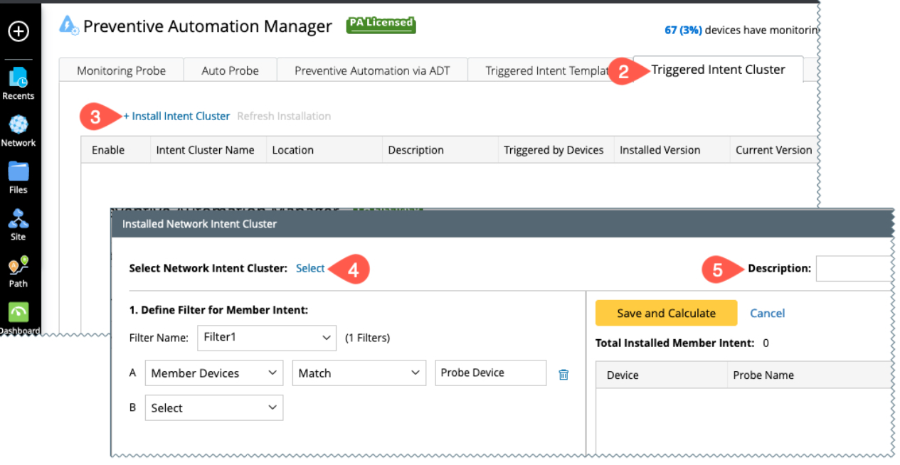 - Click +Install Intent Cluster and the window Installed Network Intent Cluster will appear on screen.