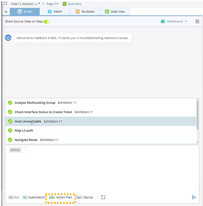 Use the Action Plan button in the conversational UI, and select the desired action plan.