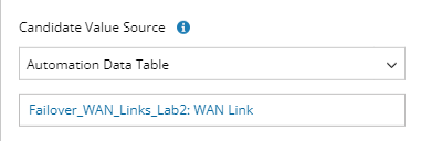 Candidate Value Source Details Same as Seed Intent The seed devices in the selected intent will be the candidate value. Upstream Data The data from the upstream node when there is one. Associated System Data - Device: All devices will be candidate value and available for end users to select from.
