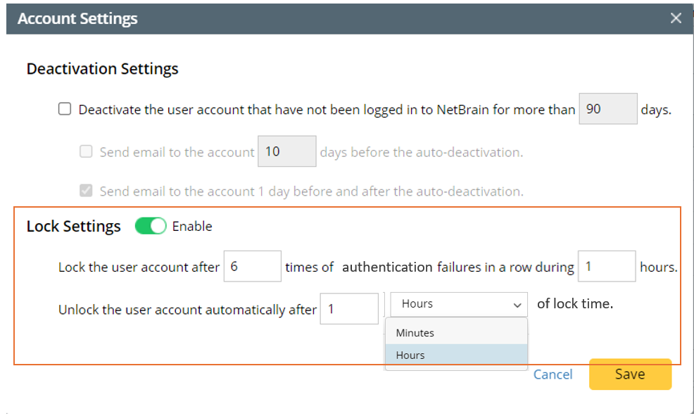 icon). This lockout policy applies to both username/password authentication failures and verification code failures. The settings in the example shown in the screenshot below mean that if code verification fails 6 times within 1 hour, this user account will be locked out for one hour.