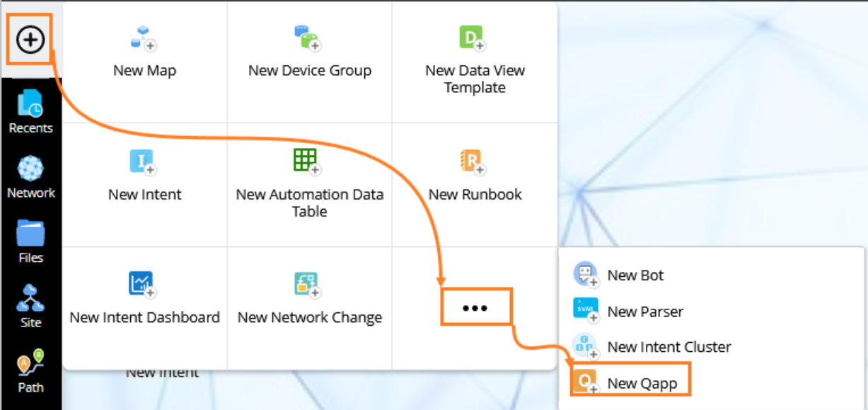 - Click the "+" icon from the taskbar, go to three dotted menu and then select New Qapp from the drop-down.