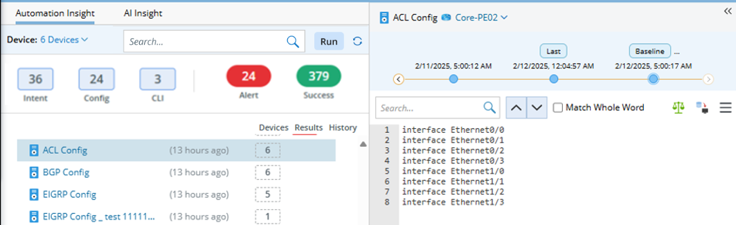 The Automation Insight tab displays the names of config parsers.