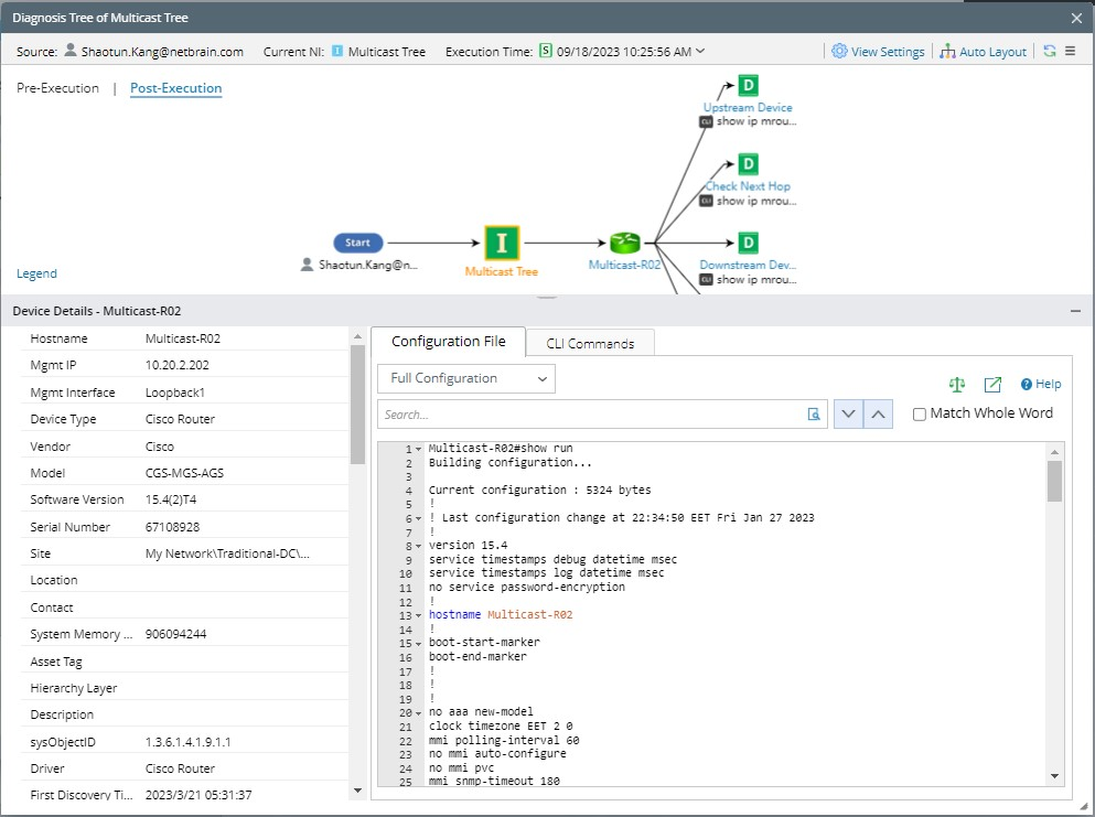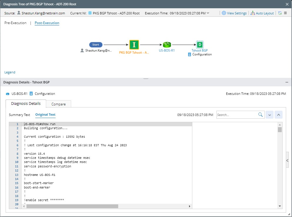 The details pane of the Diagnosis node in the post-execution mode is as follows: