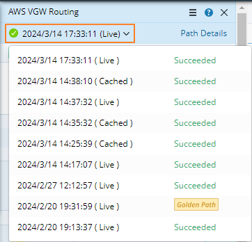 - In the Path Browser, click the number in the History column of the target path entry. A floating box prompts to display all history results of the path by timestamp.
