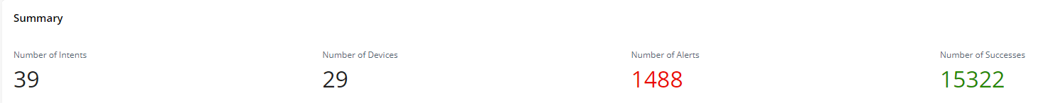 | Number of Devices | The total number of intent devices on the observability dashboard, adding together the intent devices in all Result Detail Charts |