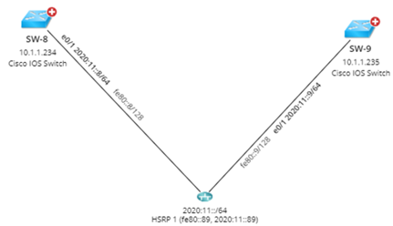 If an IPv6 address is configured with First Hop Redundancy Protocols such as HSRP/VRRP/GLBP, the specific protocol name, group ID, and virtual IP address on the LAN media connecting these interfaces will be displayed.