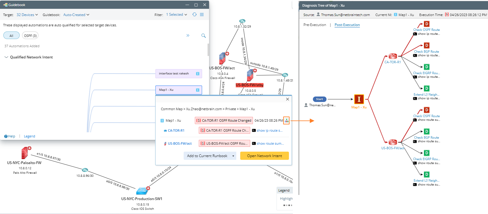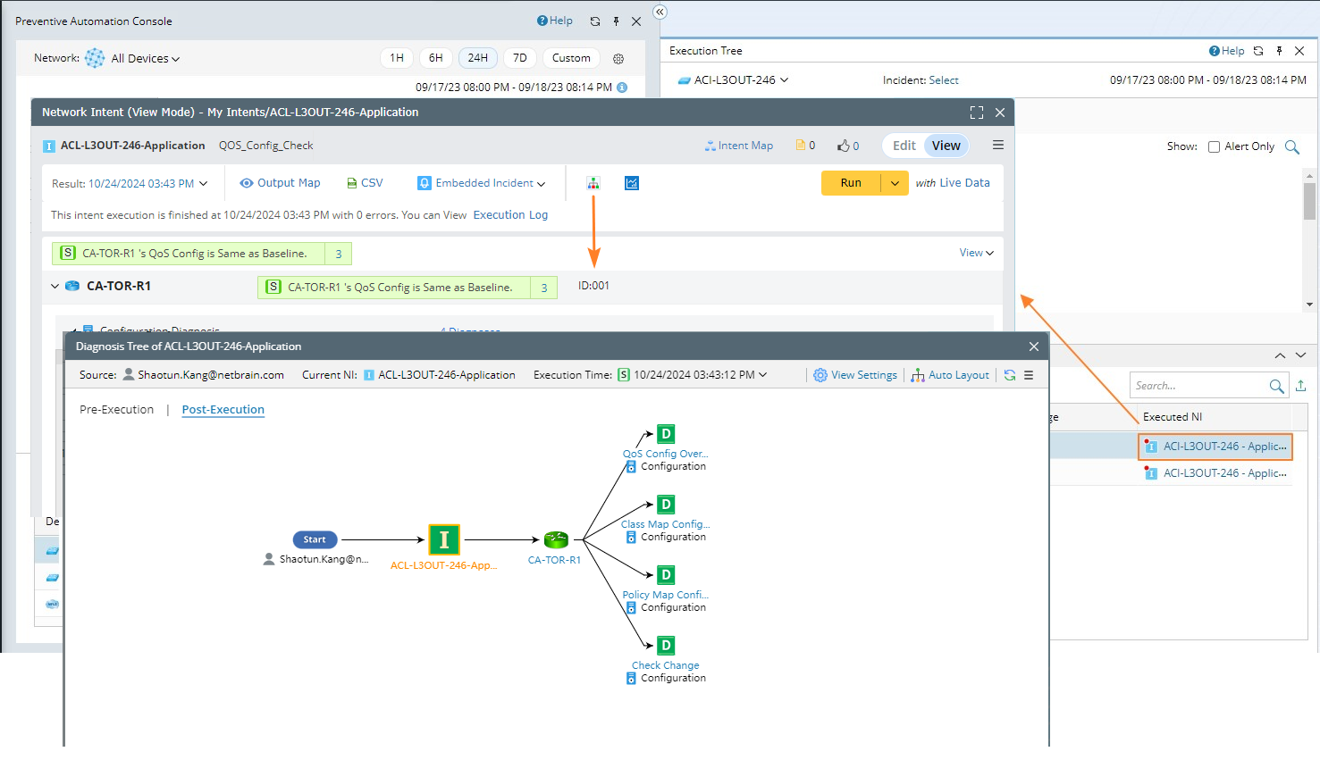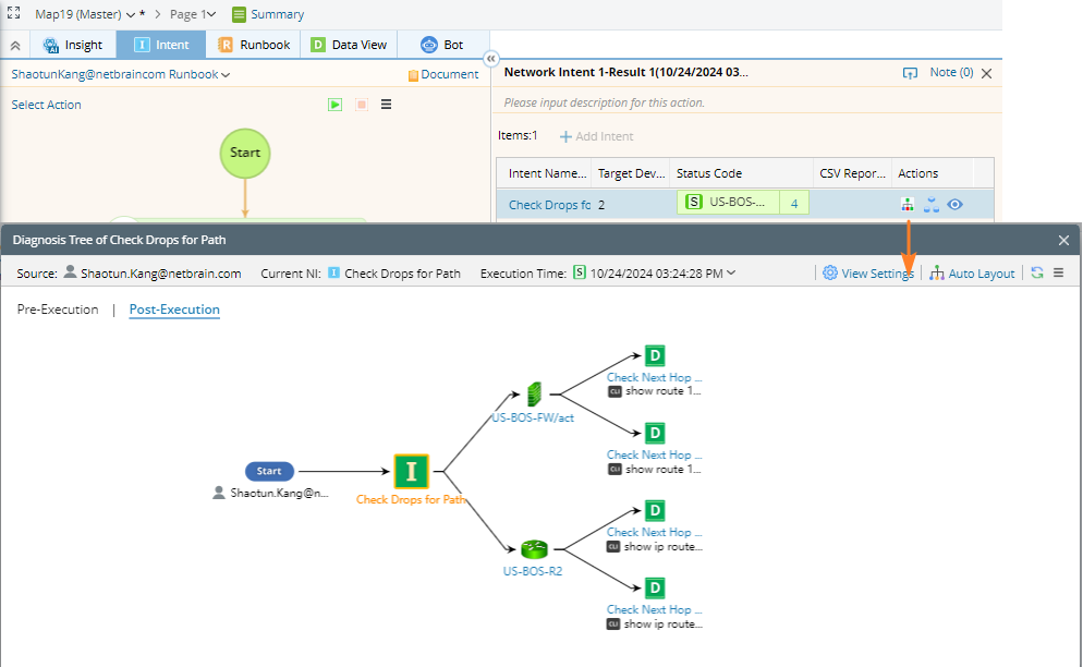 The NI in the NI node of the Runbook is still selected from the NI Manager, so only the home NI can be selected. After the home NI and follow-up NIs are executed, only the execution result of the home NI will be displayed in the Runbook. The result of follow-up NI will not be displayed in the Runbook, and you can view the execution result of follow-up NI through the diagnosis tree.