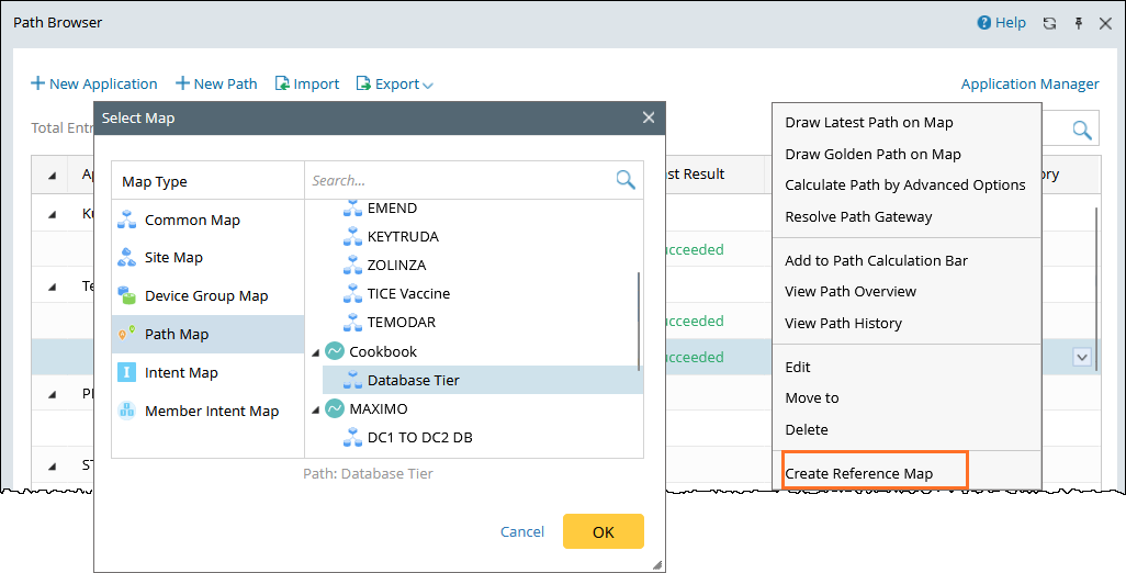 - (Optional) Right-click this path and select Create Reference Map to associate the path with related maps to better express network problems.