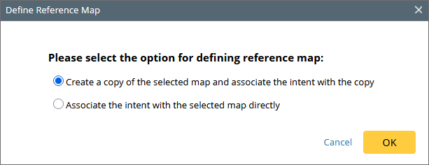 - Associate the Intent with the selected map directly: this option will directly associate the path to an existing map. You may only have the View Only privilege of the reference map.