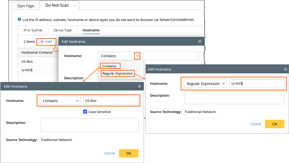 Use this tab to exclude devices based on hostname patterns. To Add a Hostname Rule:
