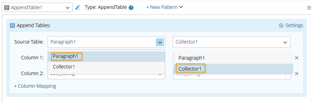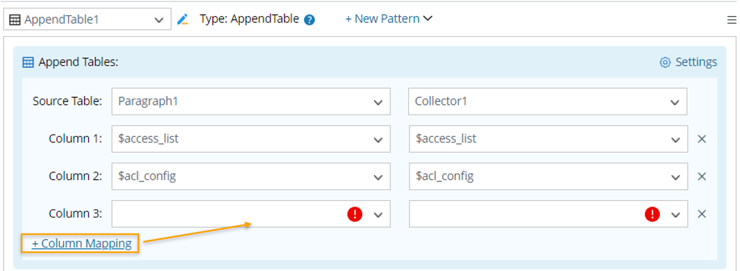 - Click +New Pattern > Advanced > Append Table.