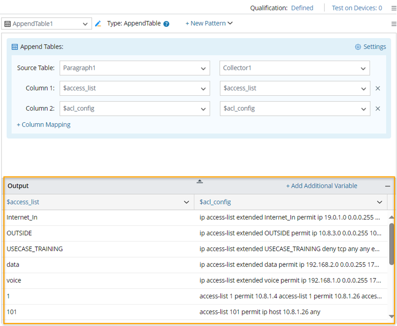 - For Source Table 1: Define a paragraph pattern to parse variables $access_list and $acl_config configured by name.