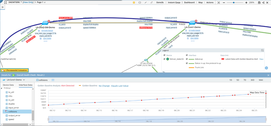 - View the running result to address the root cause of the alert. In this case, the alert is caused by a duplex mismatch.