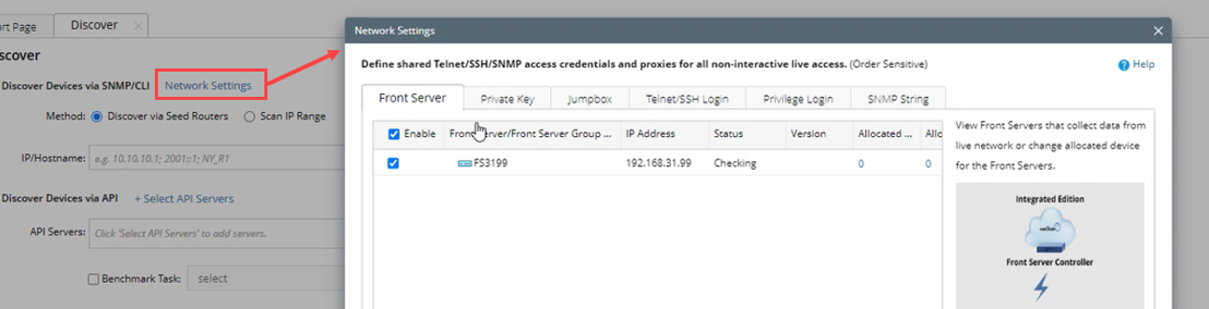 - Only the assigned Front Server(s)/ Front Server Group(s) can be displayed in UI. For example, in Discover, only the assigned Front Server(s)/ Front Server Group(s) will be available.
