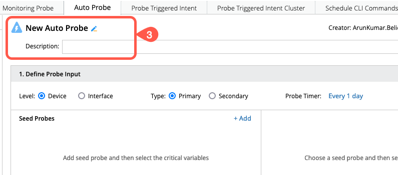 Seed probe on a device can be created from Preventive Automation Manager > Monitoring Probe tab, refer to Defining Flash Probe for further detailed information.