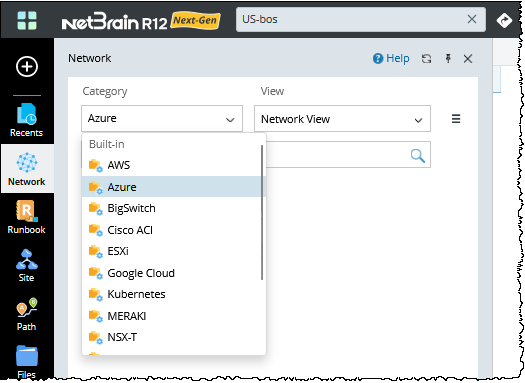 - In the View field, select Network View to view the Azure resources.