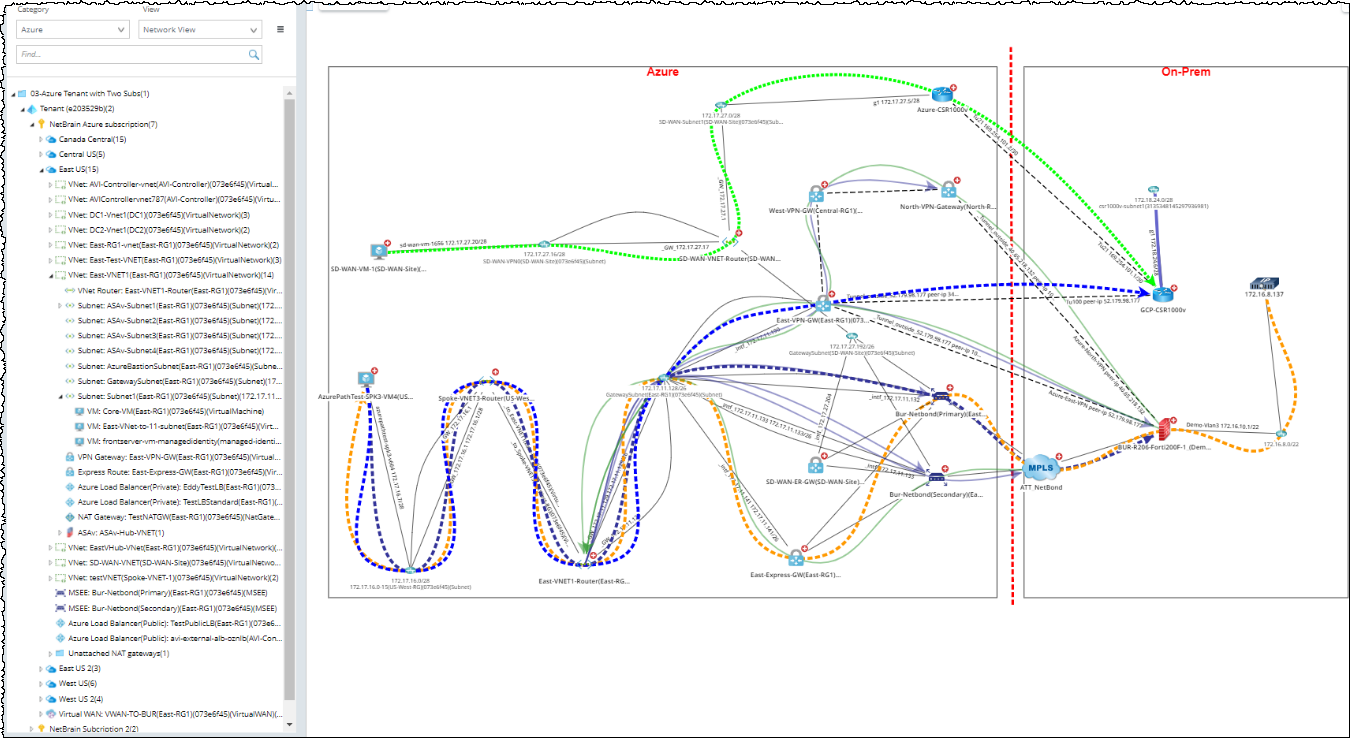All Azure resources discovered are displayed on the network tree. In addition, you can click a resource to open its context map.