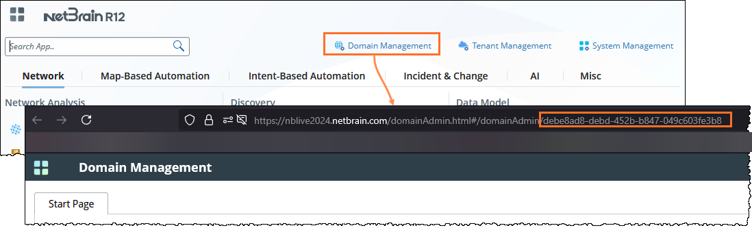 Tip: To find the Domain ID, navigate to the Domain Management page and refer to the URL.