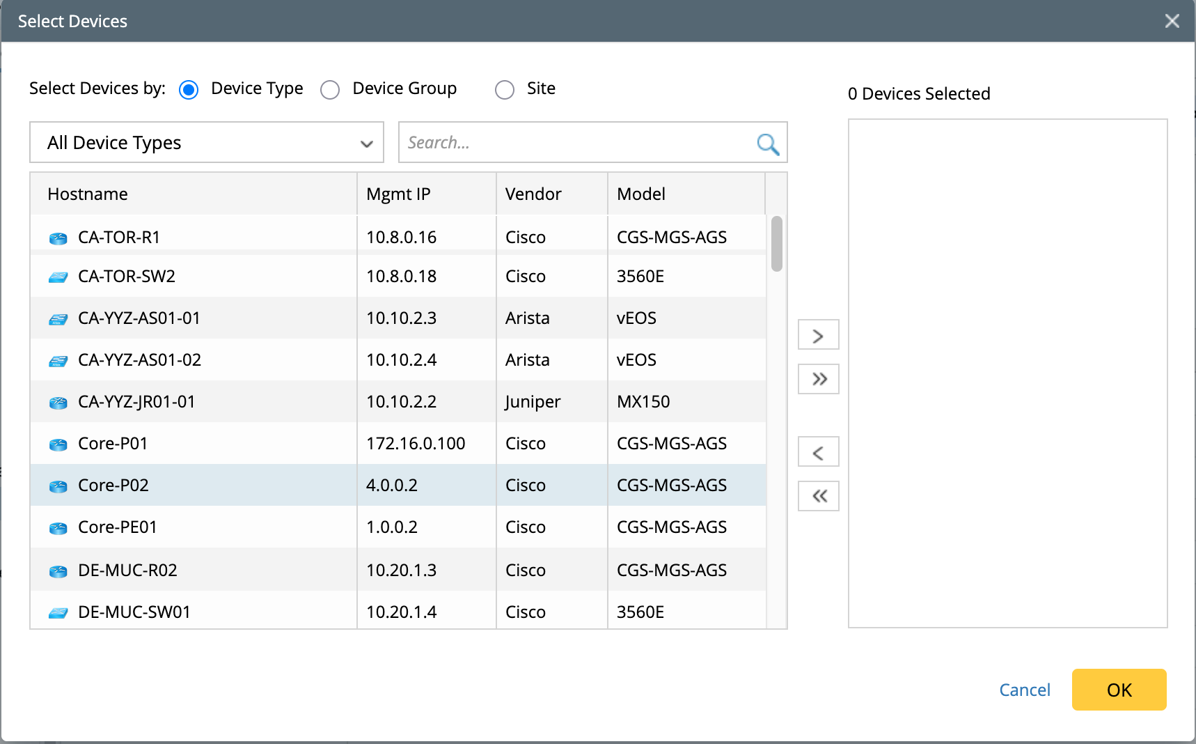 From System Device: It opens the standard Select Device window. Select the required devices and click OK.