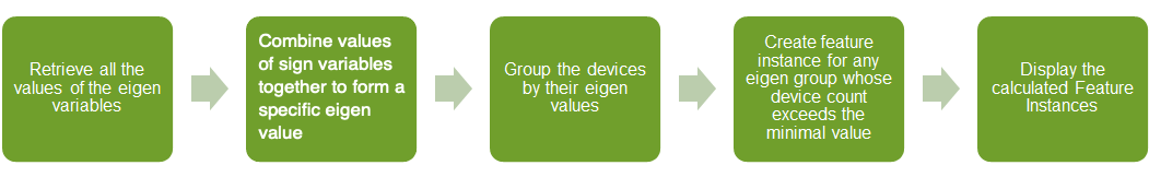 Eigen Value: Each unique Eigen value generates a row. And, the devices with the same Eigen value are grouped into the same row.