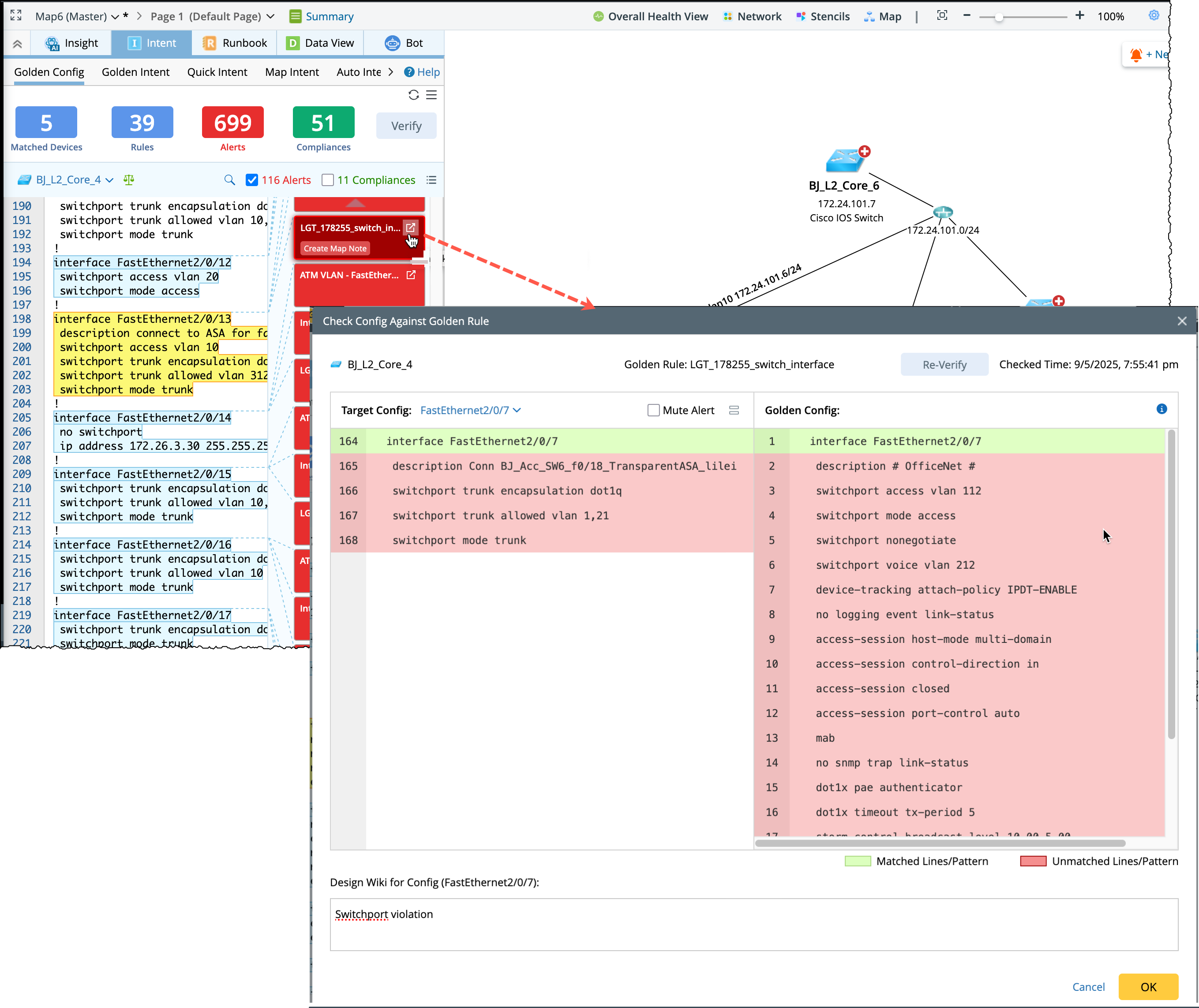 icon and select a golden config rule. In this example, only one golden config is matched, therefore, the golden config list is hidden.