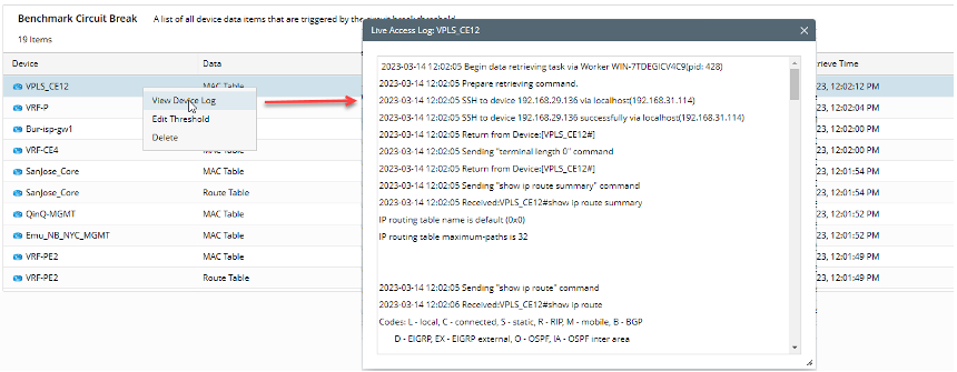 For example: If the data size for the routing table of the core router is larger than the default Circuit Break threshold. But, still want to get data in the Server Benchmark, it can be achieved by modifying the thresholds.