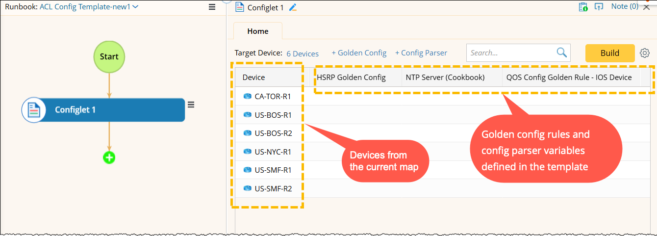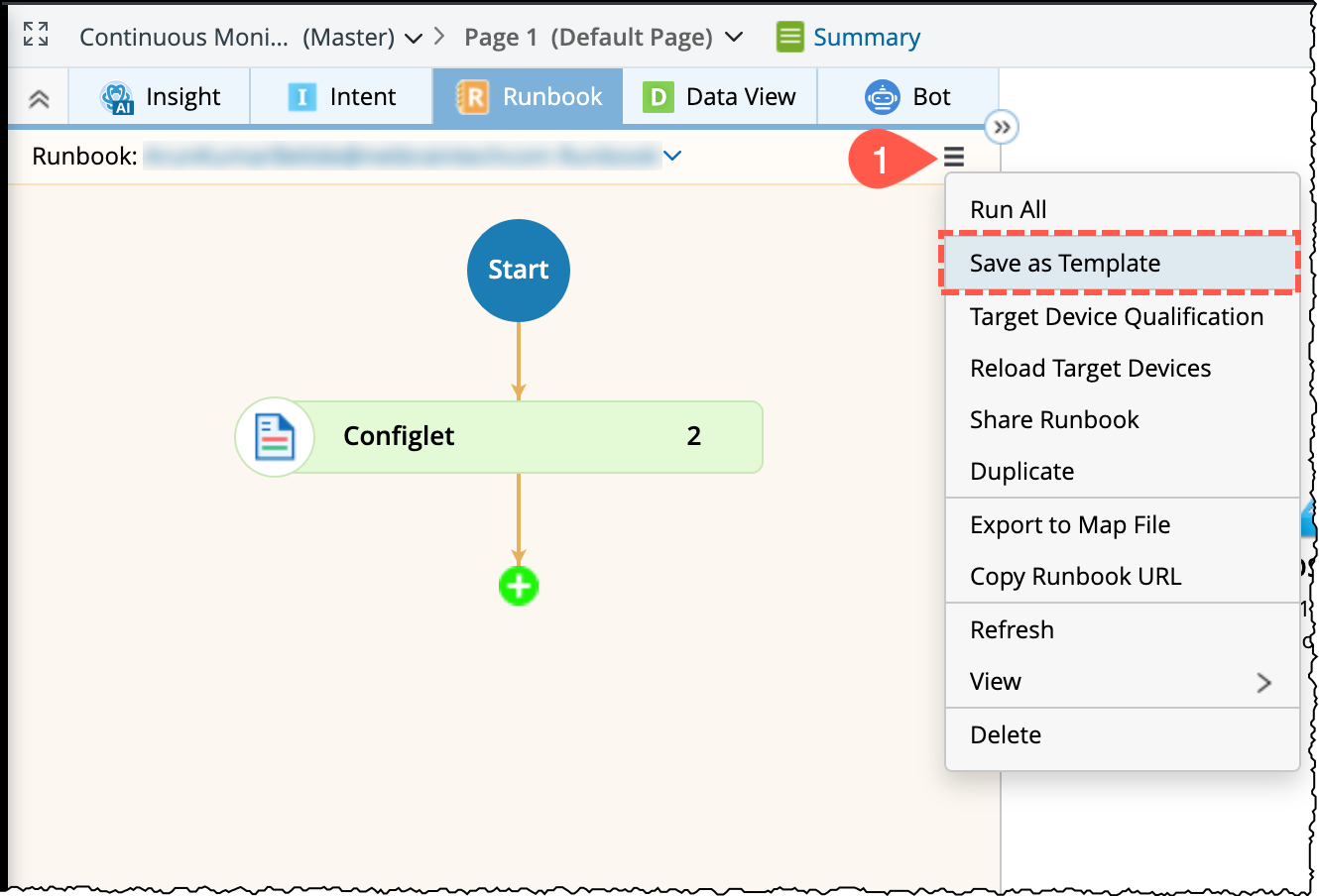 A new Runbook is created with the same name and you can further modify the Runbook if needed. The Configlet Node will automatically include: