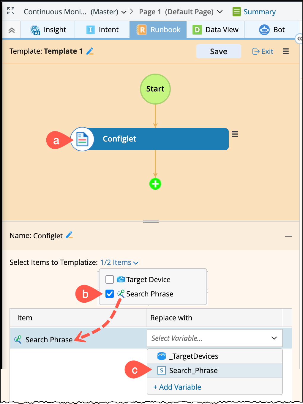 - Open the runbook with pre-defined Configlet node.