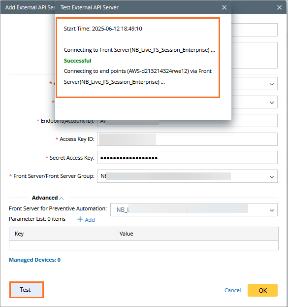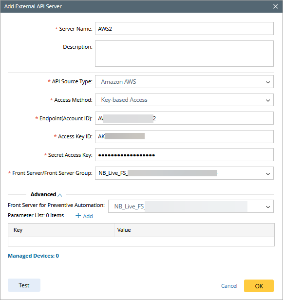 - Create a new external API server and select Amazon AWS as the API Source Type.