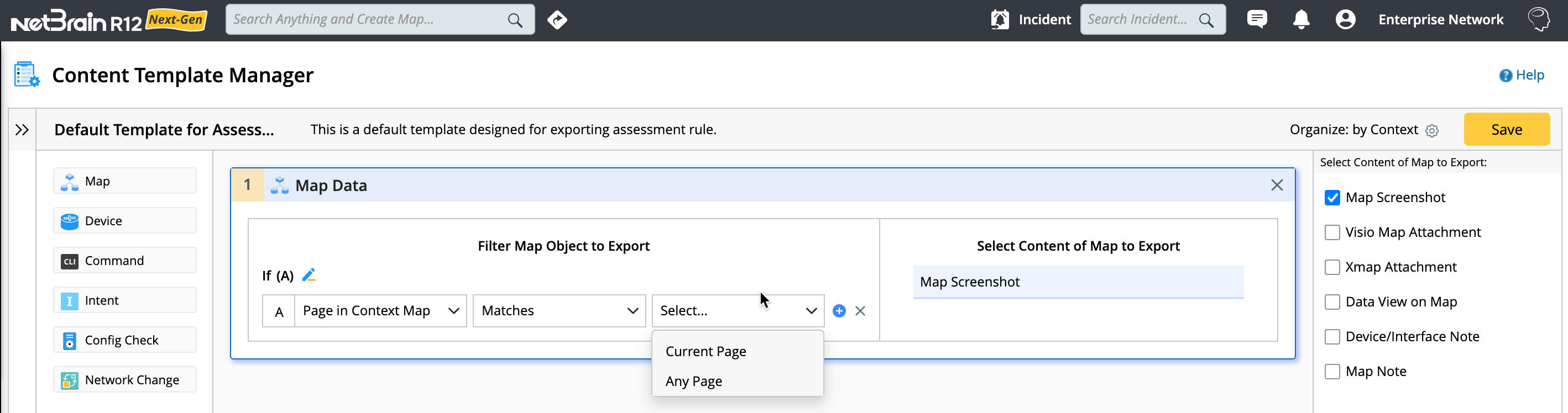 Map: The Map refers to the context map corresponding to the runbook. Select either the Current Page or Any Page. If no condition is defined, the default is set to all pages.