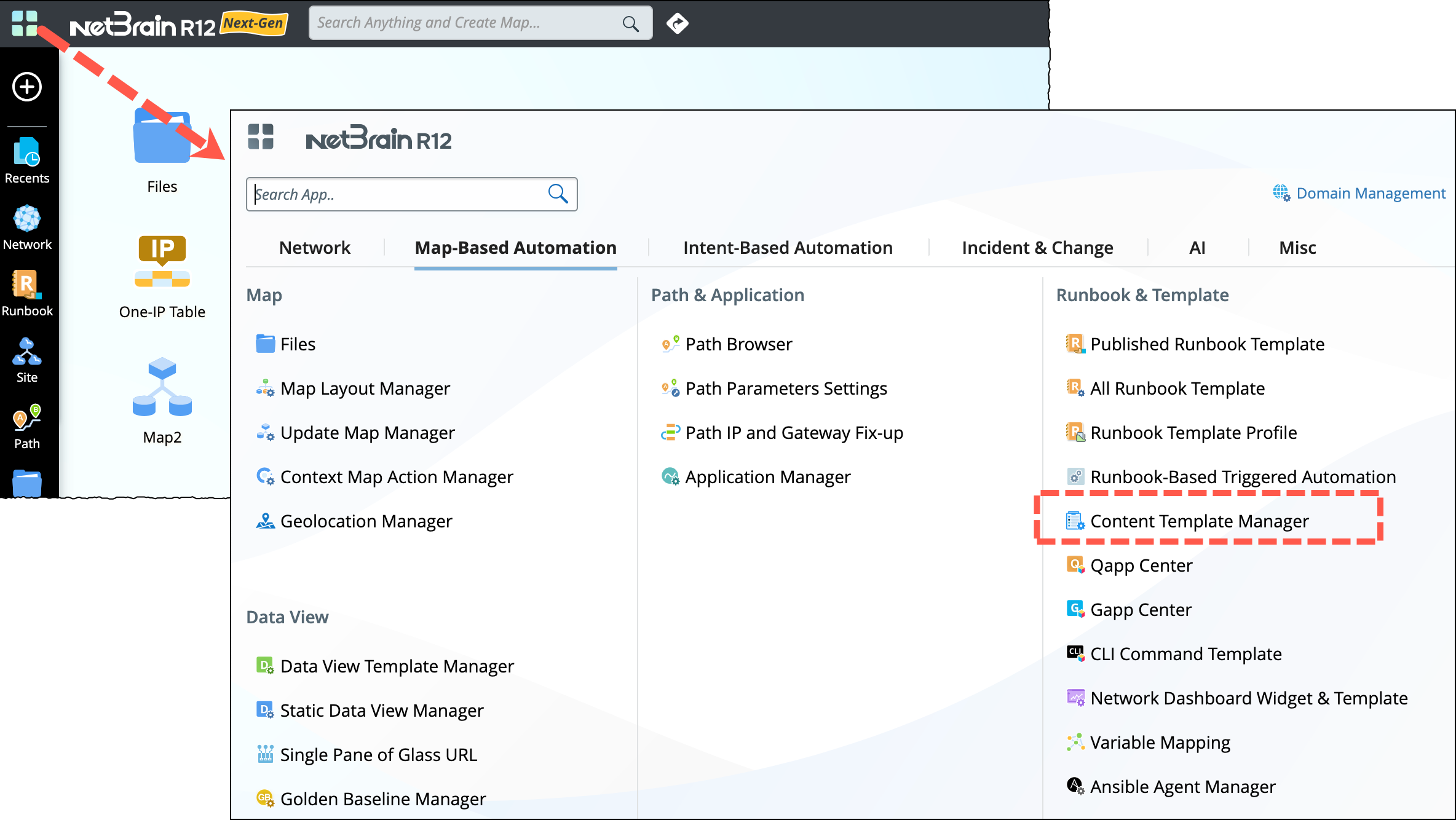 You can access it from the menu > Map-Based Automation > Runbook &Template> Content Template Manager.