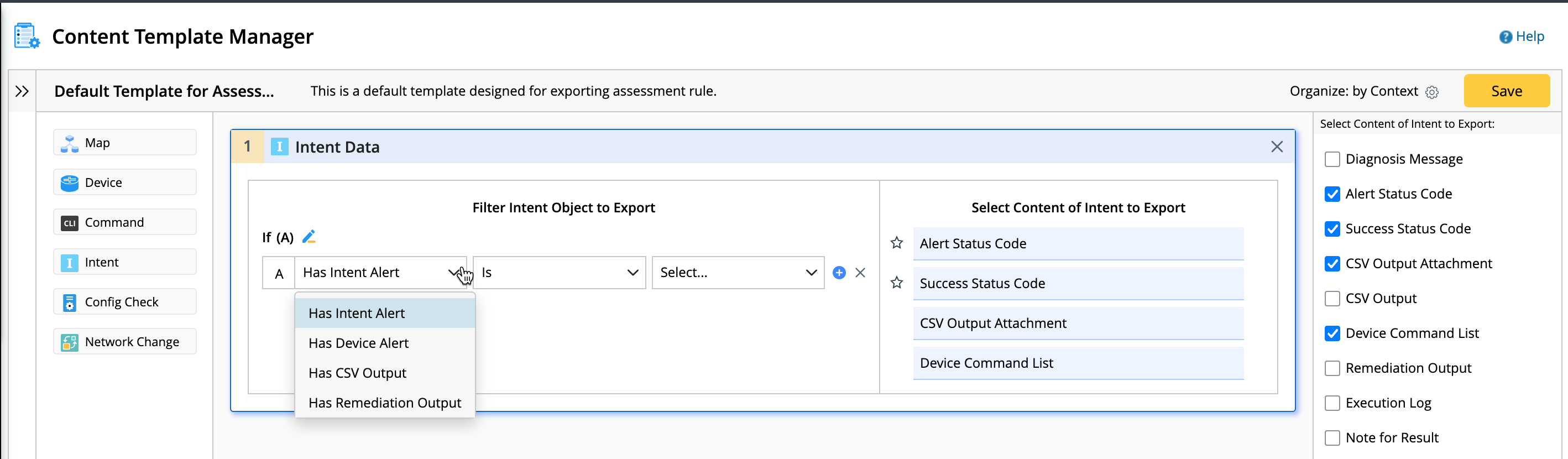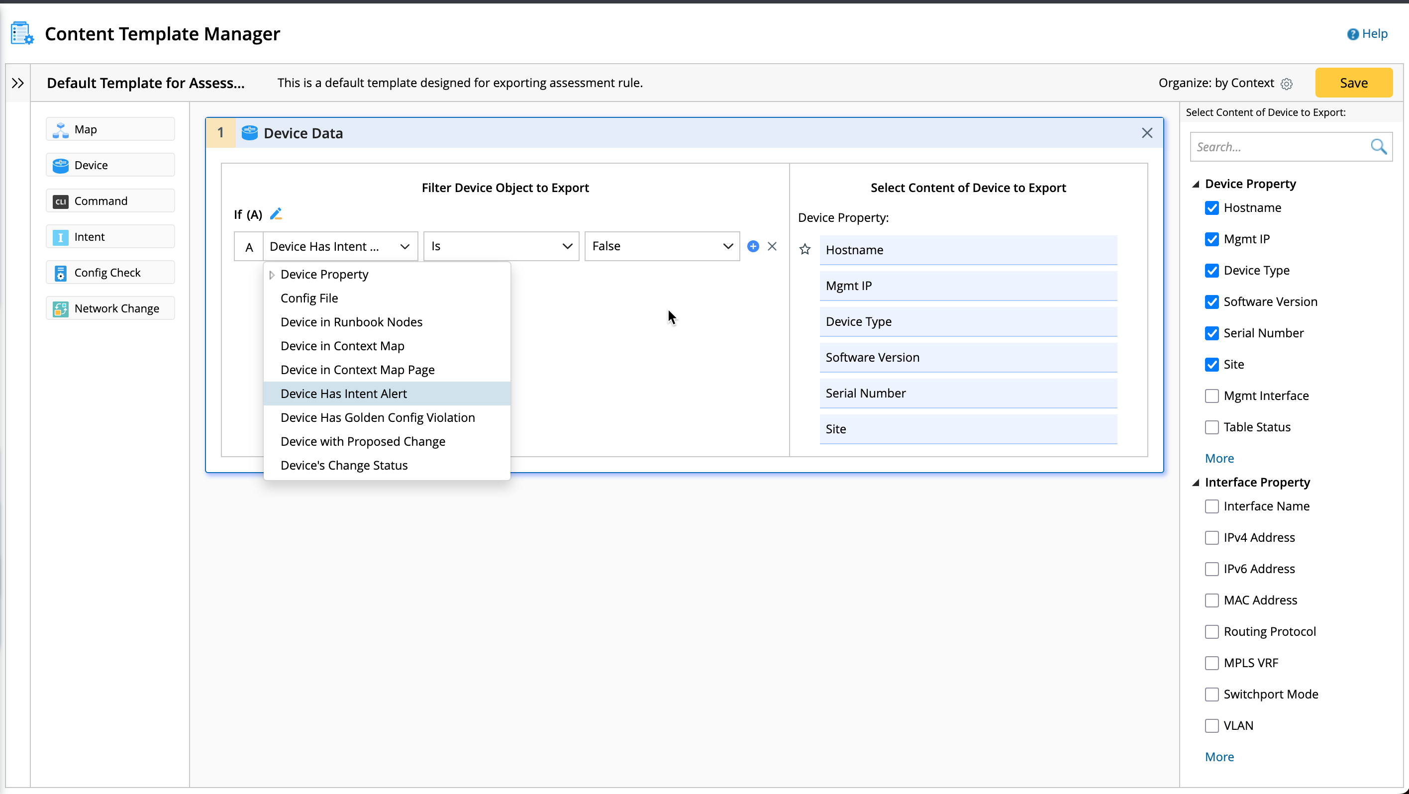 - Filter the devices using conditional statements, eg: Device Has Intent Alert | Is | False, this condition will retain the devices without intent alerts.