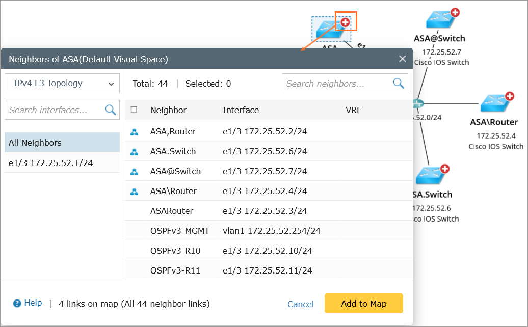 icon at the upper-right corner of a device icon to extend its neighbors on the Map. For more information, see Extending Neighbors.