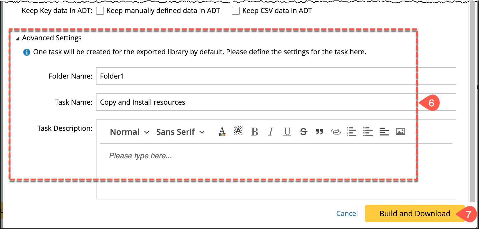 Keep Key data in ADT: It is used to manage manually defined data and CSV data in ADT while building the Library. Enable this option to include in the export.