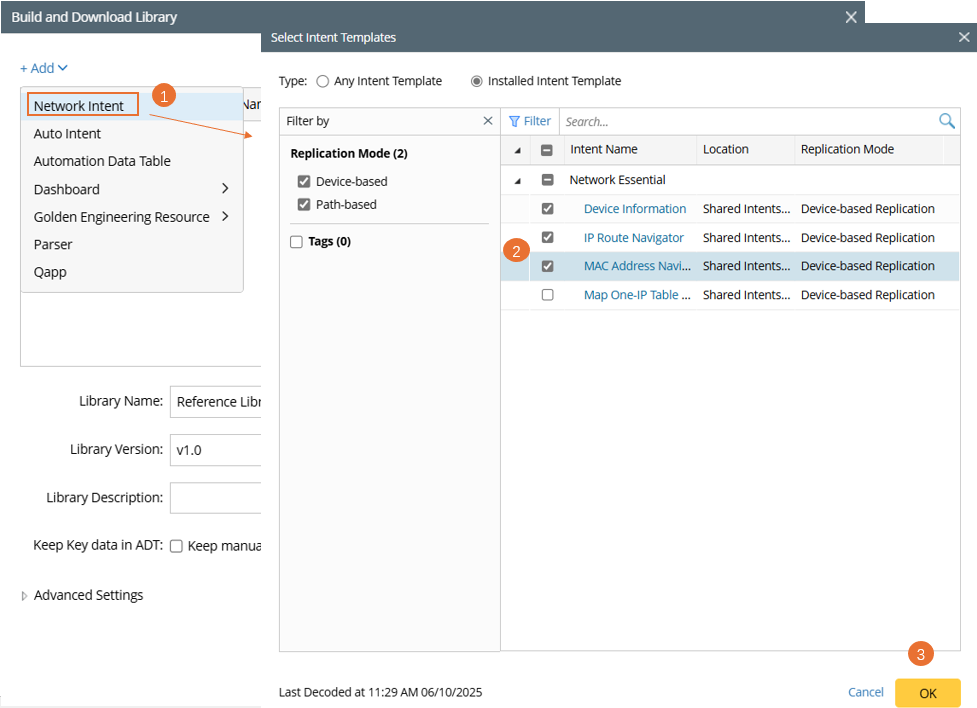 Example: Golden Config Templates in ADT and intents in the manually defined intent column can be exported as resource in Library.